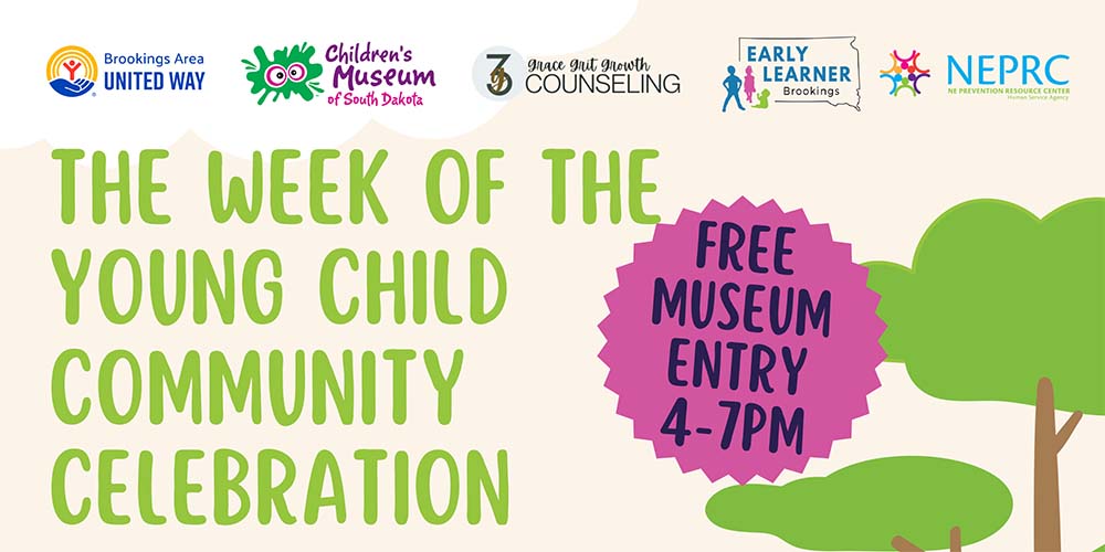 Celebrate the community’s commitment to making early childhood education a priority in Brookings County. Free Museum entry from 4-7 pm. Local area resources will have booths from 4-6 pm.
